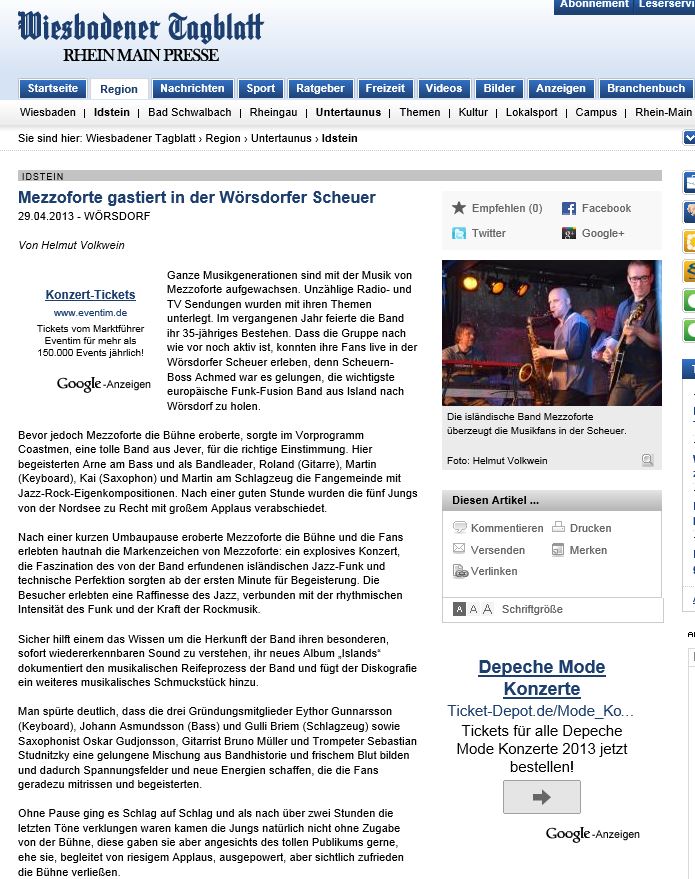 Presse nach Auftritt mit Mezzoforte